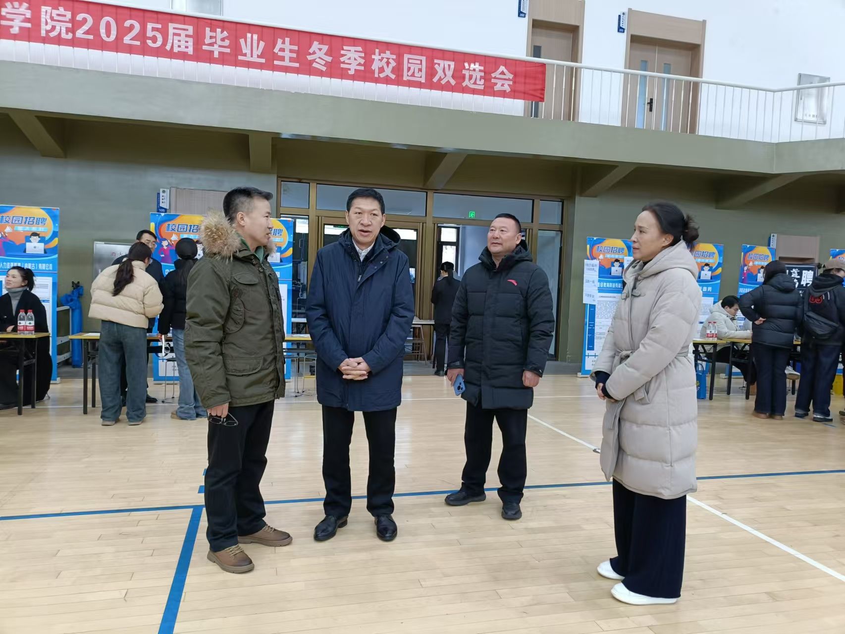 12月20日,我校在南校區(qū)籃球館舉辦“百城千校萬企”促就業(yè)行動(dòng)冬季校園雙選會(huì),校黨委書記劉九萬,黨委委員、副校長額爾敦布和深入雙選會(huì)現(xiàn)場與參會(huì)企業(yè)和畢業(yè)生親切交流,對(duì)用人單位的崗位需求、畢業(yè)生的就業(yè)意向進(jìn)行了溝通了解。