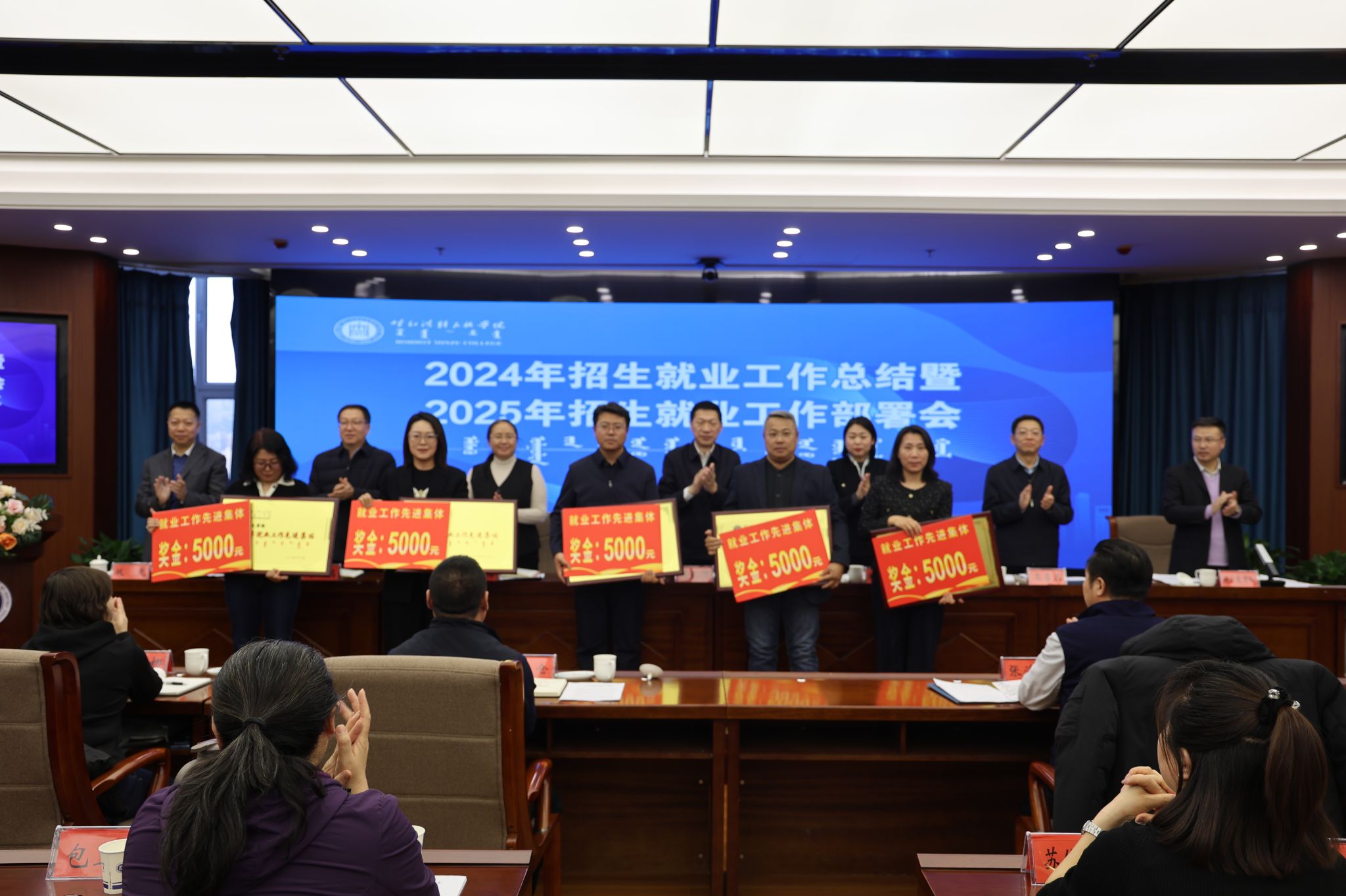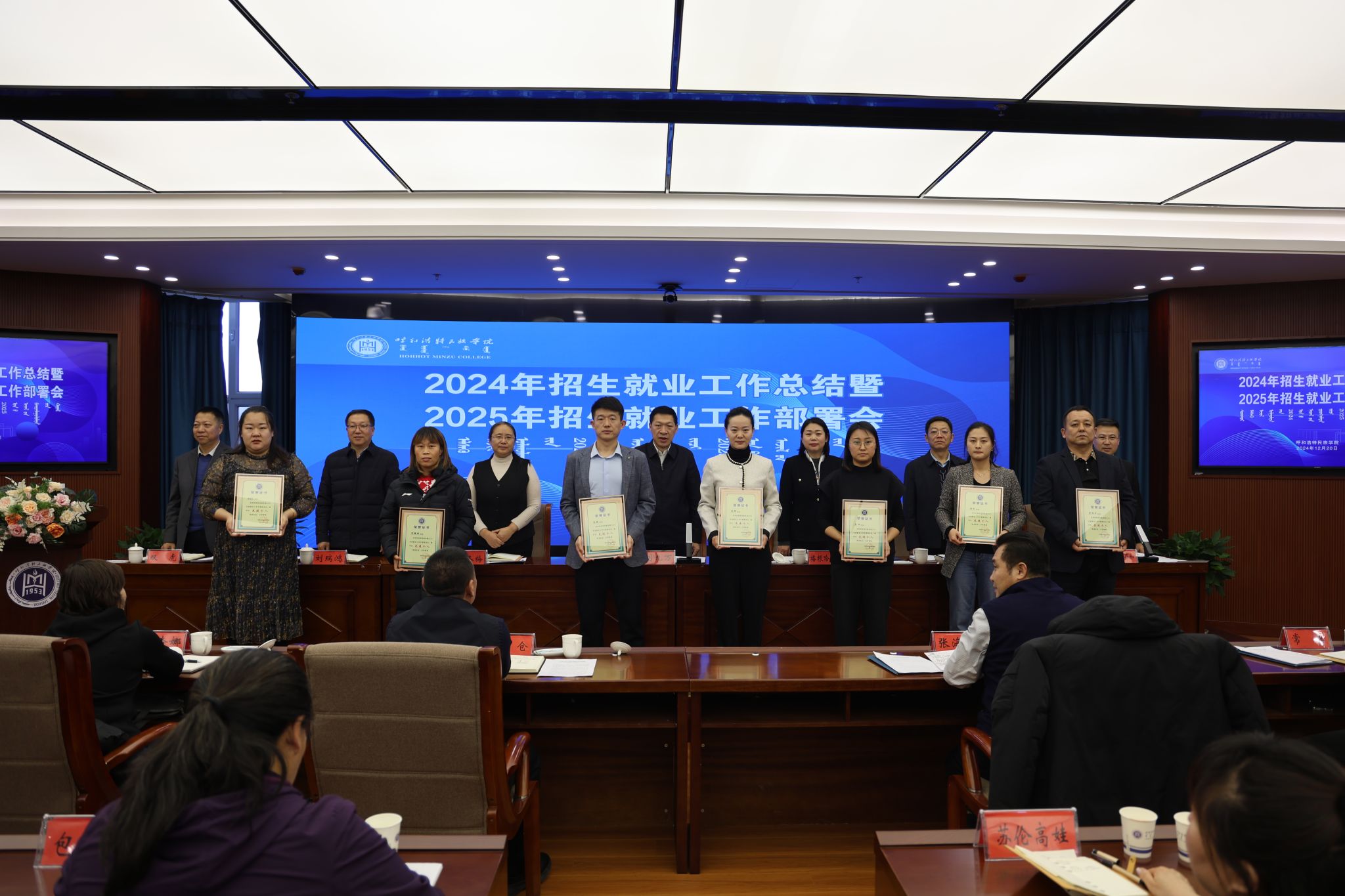 劉九萬代表學(xué)校黨委,向受到表彰的先進(jìn)集體和先進(jìn)個(gè)人表示祝賀,向?yàn)閷W(xué)校就業(yè)工作辛苦付出的各單位、各部門和全體教職員工表示衷心的感謝!他在講話中肯定了2024年招生就業(yè)工作所取得的成績,同時(shí)也指出了不足,并就全面推進(jìn)2025年招生就業(yè)工作提出了四點(diǎn)意見:一是提高站位,明確招生就業(yè)工作的總目標(biāo)。建設(shè)一流本科教育,培養(yǎng)一流人才,實(shí)現(xiàn)一流就業(yè)。二是創(chuàng)新機(jī)制,優(yōu)化招生就業(yè)工作的策略與方法。建立健全招生就業(yè)工作聯(lián)動(dòng)機(jī)制,推進(jìn)招生就業(yè)工作信息化建設(shè),加強(qiáng)招生就業(yè)工作隊(duì)伍建設(shè),創(chuàng)新招生宣傳與就業(yè)指導(dǎo)方式。三是強(qiáng)化責(zé)任,確保招生就業(yè)工作取得實(shí)效。要強(qiáng)化組織領(lǐng)導(dǎo),明確任務(wù)和時(shí)間節(jié)點(diǎn),全面推進(jìn)“班子帶頭、部門統(tǒng)籌、學(xué)院主抓”的就業(yè)協(xié)同機(jī)制,確保各項(xiàng)工作有序進(jìn)行、有效落實(shí)。四是建立健全招生就業(yè)工作監(jiān)督考核機(jī)制,加強(qiáng)對(duì)各學(xué)院就業(yè)工作進(jìn)展情況的督促檢查,同時(shí)要充分利用校內(nèi)外各種媒體資源,加強(qiáng)對(duì)招生就業(yè)工作的宣傳報(bào)道。劉九萬強(qiáng)調(diào),全校各單位、各部門,要繼續(xù)保持奮發(fā)有為的精神狀態(tài)、攻堅(jiān)克難的擔(dān)當(dāng)意識(shí)、與時(shí)俱進(jìn)的進(jìn)取精神,凝練特色、樹立形象、展示力量、鑄造輝煌,為全力推進(jìn)學(xué)校事業(yè)高質(zhì)量發(fā)展作出新的、更大的貢獻(xiàn)。