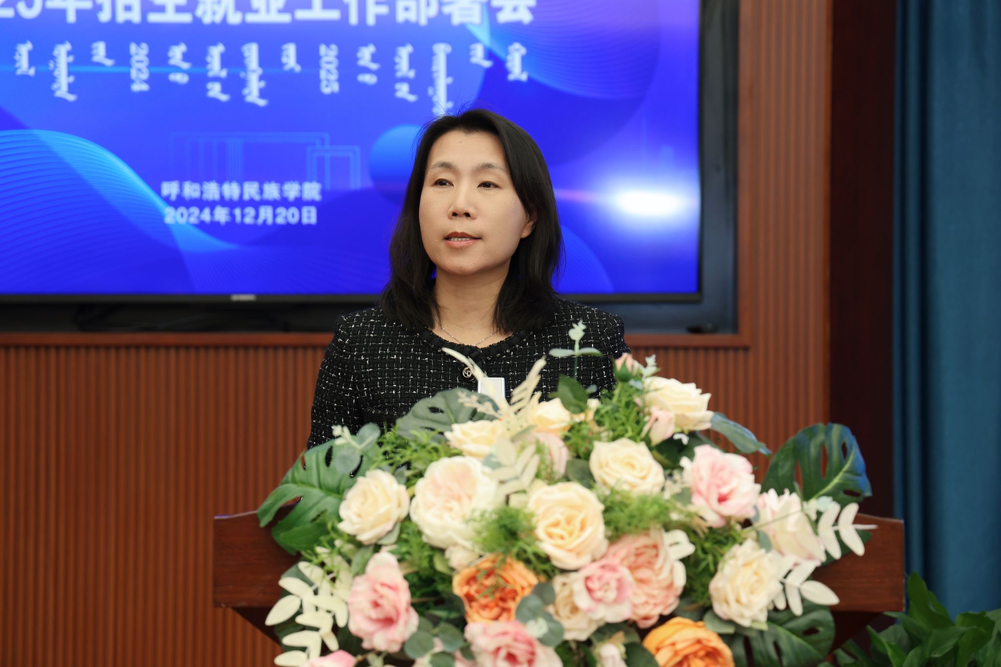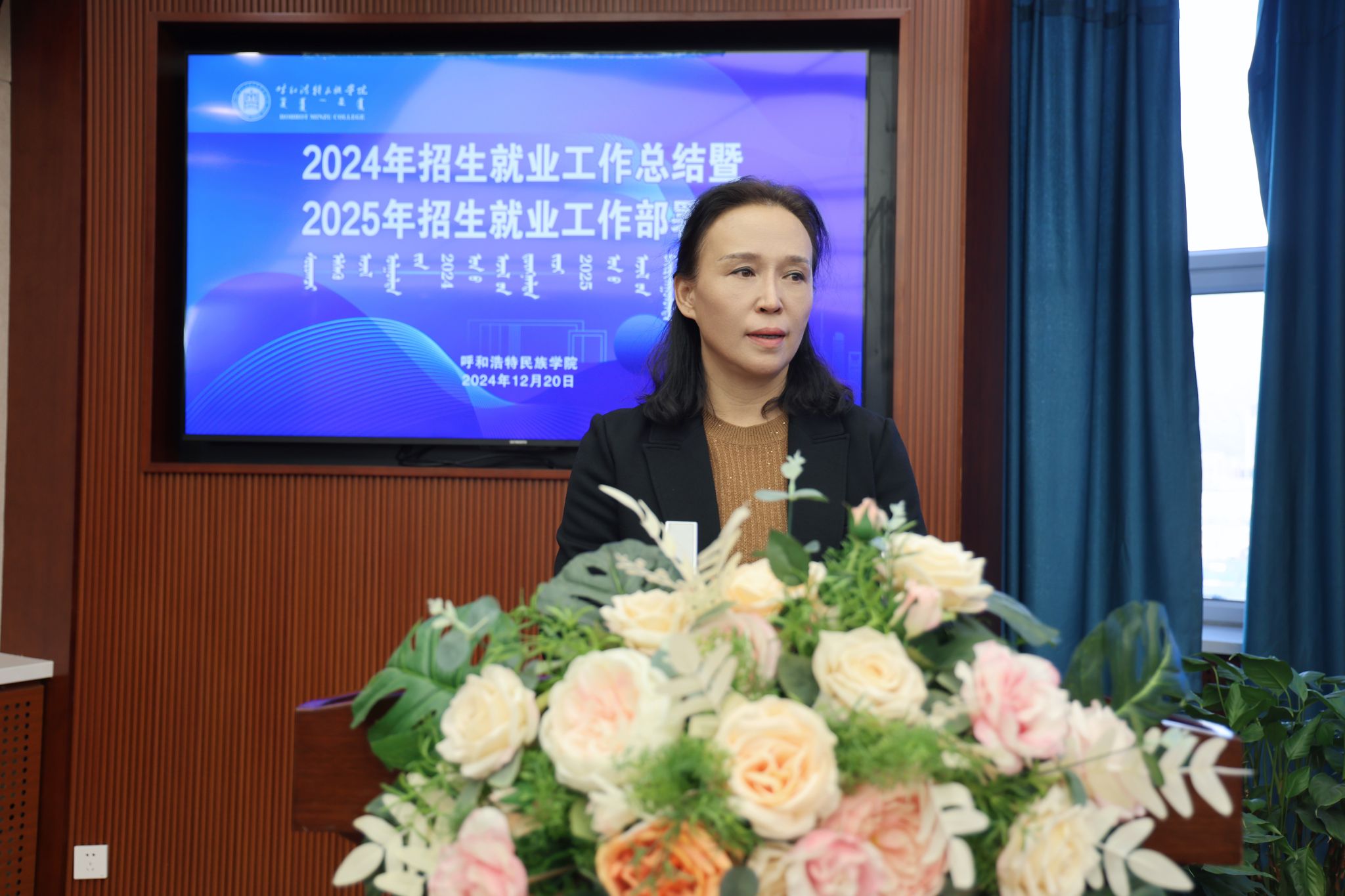 12月20日,學(xué)校在綜合樓12樓會(huì)議室召開了2024年招生就業(yè)工作總結(jié)暨 2025年招生就業(yè)工作部署會(huì)議。校黨委書記劉九萬出席會(huì)議并講話。黨委副書記格根哈斯,黨委委員、紀(jì)委書記、監(jiān)察專員王冬梅,黨委委員、副校長高喜天,黨委委員、副校長劉瑞鴻,黨委委員、副校長額爾敦布和,黨委委員、副校長雙虎出席會(huì)議。會(huì)議由額爾敦布和主持。