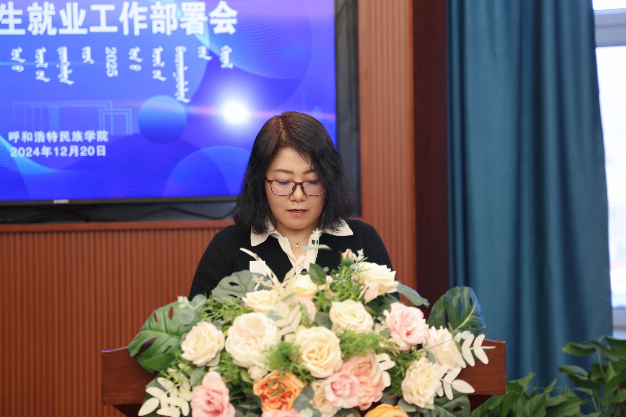 格根哈斯宣讀了《呼和浩特民族學(xué)院關(guān)于表彰2024年就業(yè)工作先進(jìn)集體和先進(jìn)個(gè)人的決定》。