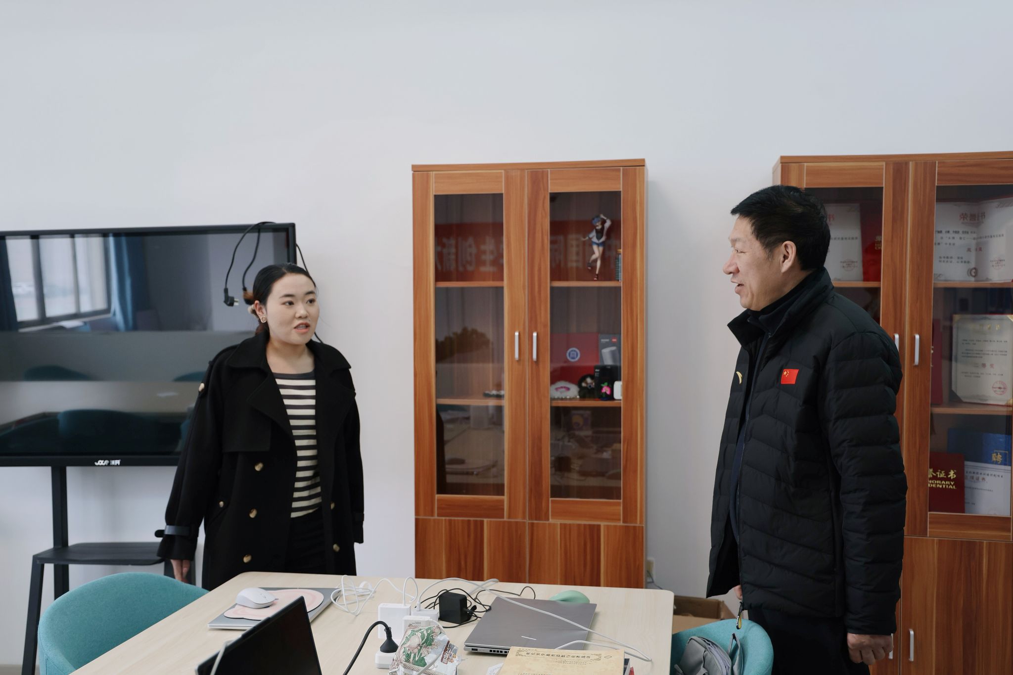 在創(chuàng)新創(chuàng)業(yè)孵化基地,劉九萬與參加學(xué)校大創(chuàng)訓(xùn)練項(xiàng)目的學(xué)生進(jìn)行了交流,鼓勵(lì)學(xué)生們珍惜學(xué)校提供的實(shí)踐平臺(tái),努力提升自己的動(dòng)手能力和創(chuàng)新思維,將理論知識(shí)與實(shí)踐操作緊密結(jié)合,為未來的職業(yè)發(fā)展打下堅(jiān)實(shí)的基礎(chǔ)。