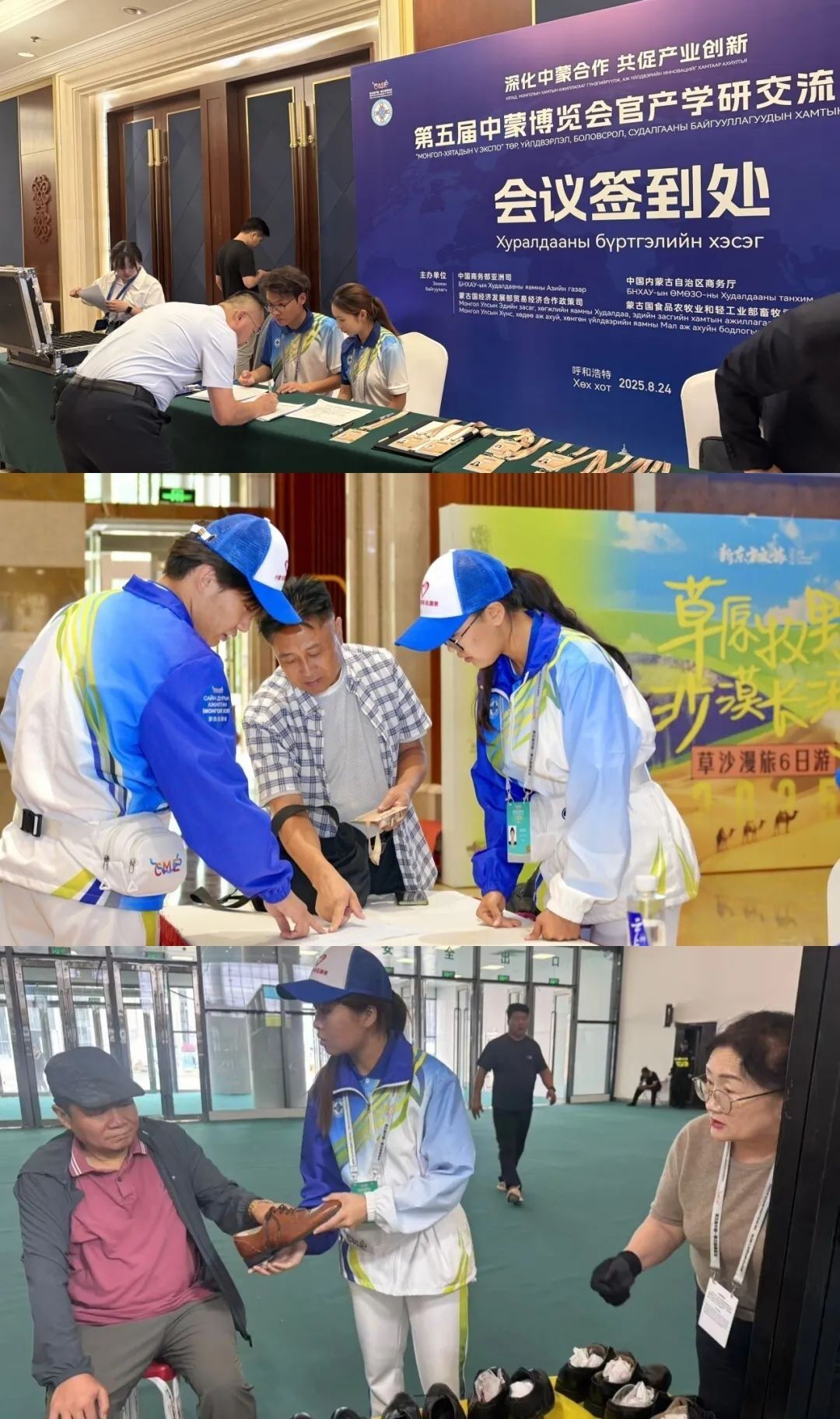 博覽會(huì)期間,我校師生積極參與多項(xiàng)核心活動(dòng)。在中蒙官產(chǎn)學(xué)研合作研討會(huì)中,以優(yōu)異的漢蒙雙語(yǔ)能力和會(huì)務(wù)組織能力,保障了學(xué)術(shù)與產(chǎn)業(yè)對(duì)話高效開(kāi)展。在海關(guān)通關(guān)服務(wù)環(huán)節(jié),師生協(xié)助引導(dǎo)、翻譯及通關(guān)協(xié)調(diào),保障了參展通道順暢運(yùn)行。此外,我校師生還深度參與了中蒙婦女交流活動(dòng)和生態(tài)合作圓桌會(huì)議,在文化展示、會(huì)議、禮儀接待、秩序維護(hù)、查詢簽到等方面發(fā)揮重要作用,有效促進(jìn)了中蒙多領(lǐng)域合作交流。