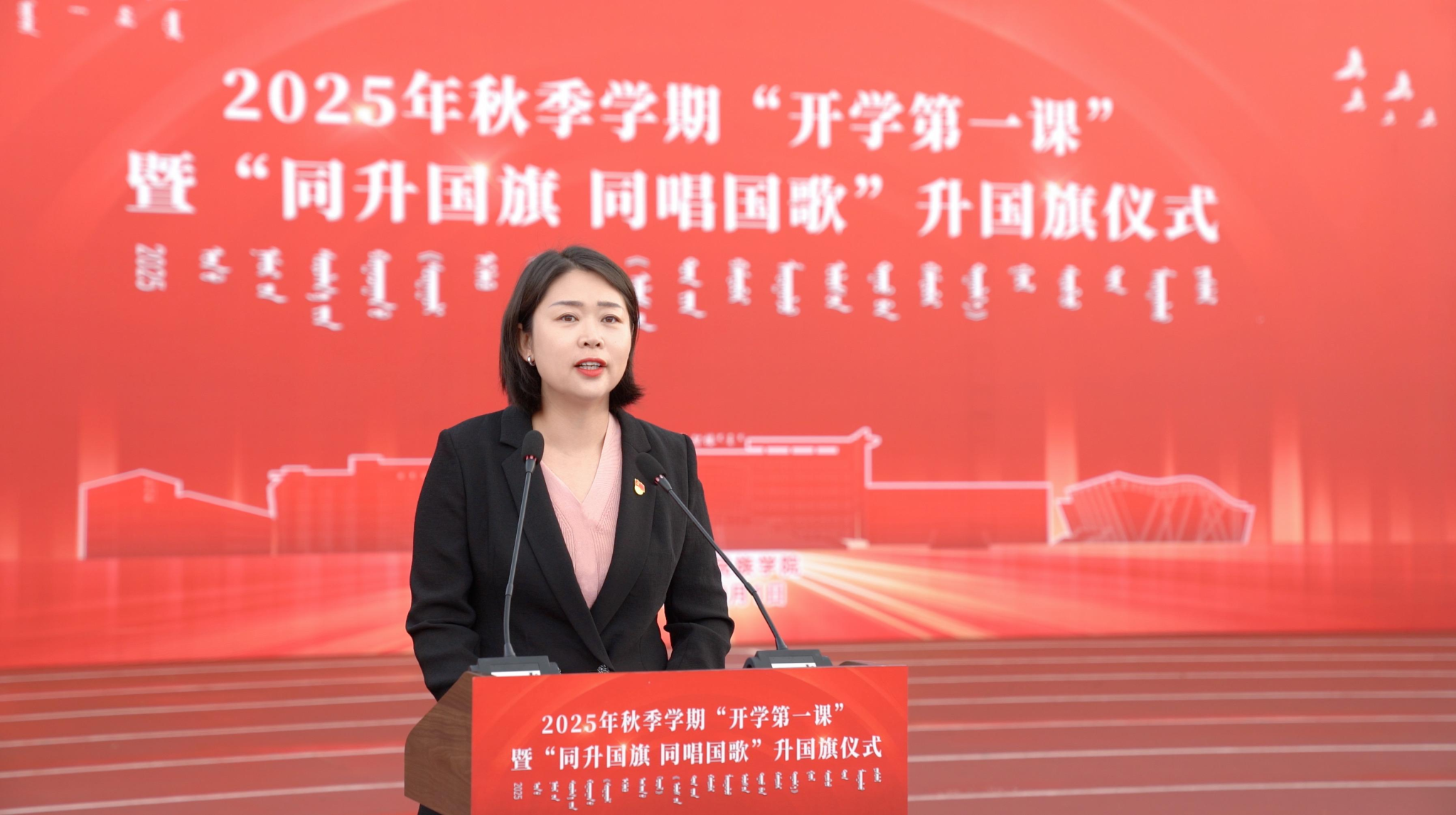 升旗禮畢,校黨委副書記格根哈斯進(jìn)行講話,為師生講授“開學(xué)第一課”。她首先對(duì)返校師生及入學(xué)新生表示歡迎,并對(duì)過去一年學(xué)校在學(xué)科建設(shè)、人才培養(yǎng)、科研成果、校園文化活動(dòng)等方面的顯著成就進(jìn)行了回顧,最后提出三點(diǎn)希望,與大家共勉:一是要厚植家國情懷,做有擔(dān)當(dāng)?shù)南刃姓摺?/strong>希望同學(xué)們將個(gè)人學(xué)業(yè)、職業(yè)規(guī)劃與國家建設(shè)、民族復(fù)興緊密相連,用扎實(shí)的知識(shí)和堅(jiān)定的行動(dòng),回應(yīng)“強(qiáng)國有我”的青春誓言,讓愛國成為青春最亮的底色,與祖國同頻共振,在時(shí)代浪潮中破浪前行;二是要堅(jiān)守求真之心,做有本領(lǐng)的篤行者。希望同學(xué)們在大學(xué)期間要沉下心鉆研專業(yè)領(lǐng)域,在實(shí)驗(yàn)室里反復(fù)核驗(yàn)數(shù)據(jù),在圖書館中深研經(jīng)典理論,更要走出校園,到科研一線跟蹤前沿動(dòng)態(tài),到基層崗位體察社會(huì)需求,拒絕浮躁敷衍,以嚴(yán)謹(jǐn)務(wù)實(shí)應(yīng)對(duì)挑戰(zhàn);三是要涵養(yǎng)品德修為,做有溫度的同行者。勉勵(lì)全體同學(xué)自覺踐行社會(huì)主義道德規(guī)范,把個(gè)人品德融入家國大義;在校園里遵守秩序、維護(hù)公共利益,于細(xì)微處修身律己。