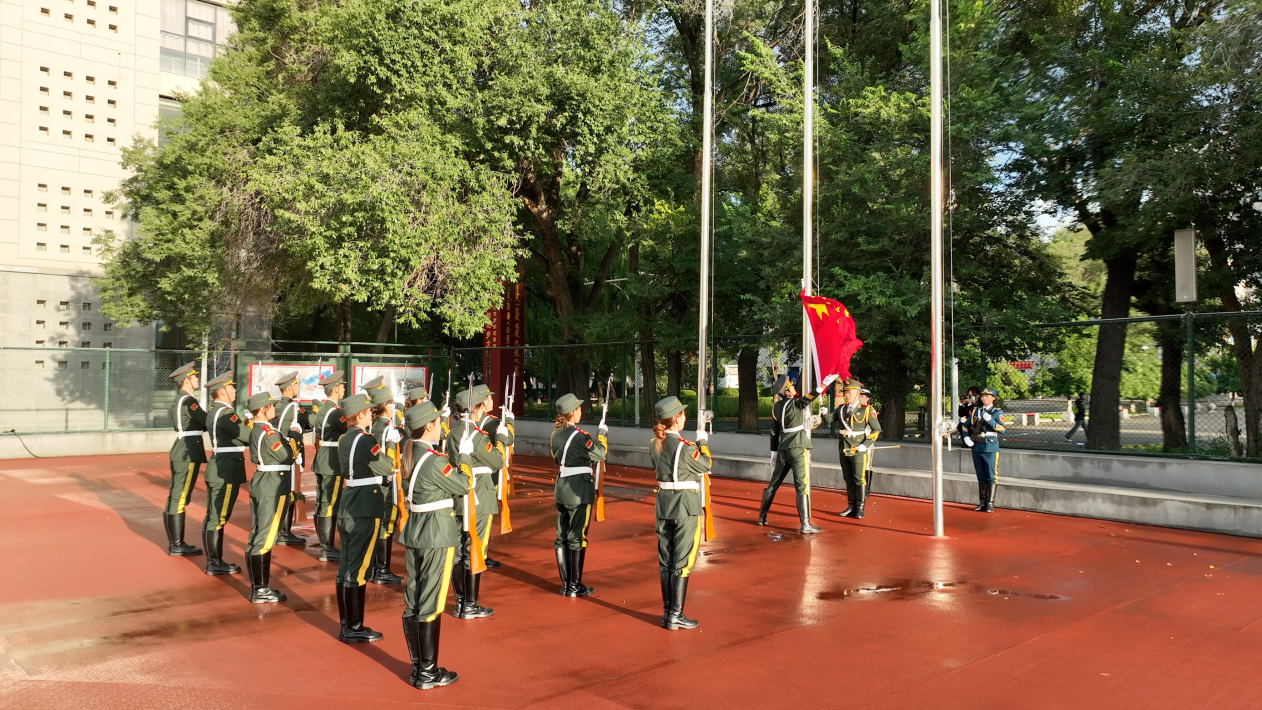 儀式在莊重肅穆的氛圍中正式開始,國旗護(hù)衛(wèi)隊(duì)邁著整齊鏗鏘的步伐,護(hù)送國旗莊嚴(yán)入場。全體師生肅立致意,以崇高敬意迎接五星紅旗。在激昂的《義勇軍進(jìn)行曲》中,五星紅旗冉冉升起,全體行注目禮,雄壯旋律回蕩校園,澎湃的愛國情懷激蕩人心。