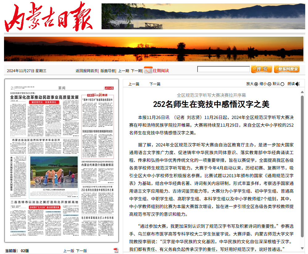 突出以文育人,厚植文化底蘊(yùn)。開展“三筆字”、演講比賽、師范生技能大賽、經(jīng)典詩文誦讀、漢聽大賽等活動(dòng),在文化浸潤(rùn)中提升文化內(nèi)涵。近年,學(xué)生在國(guó)家和自治區(qū)級(jí)學(xué)科競(jìng)賽中屢獲佳績(jī);1名學(xué)生入選內(nèi)蒙古作家協(xié)會(huì)會(huì)員,出版長(zhǎng)篇小說并獲“萌芽計(jì)劃”第三屆全國(guó)大學(xué)生網(wǎng)絡(luò)小說大賽優(yōu)秀獎(jiǎng),同時(shí)創(chuàng)作2部微電影劇本、在“快點(diǎn)”APP發(fā)布6部對(duì)話小說,展現(xiàn)出扎實(shí)的文學(xué)創(chuàng)作功底與綜合素養(yǎng)。