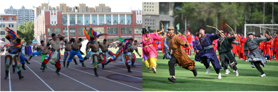 學院將國家首批非物質文化遺產“那達慕”作為文化育人核心載體,已連續(xù)舉辦12屆“校園那達慕文化節(jié)”,獲評“內蒙古自治區(qū)校園文化精品項目”,并獲得過中國教育報專題報道?;顒右浴案偧?文化+民族團結”為核心,開幕式設火炬?zhèn)鬟f、民族歌舞表演,競技環(huán)節(jié)涵蓋博克、布魯、射箭、蒙古象棋、布魯、沙嘎等傳統項目,同時推動“民族服飾時尚化”,師生身著傳統與現代融合設計的蒙古袍參與,既保留原生態(tài)文化韻味,又展現多民族交融活力。這一品牌活動不僅成為弘揚蒙古族傳統文化的重要平臺,更強化了民族團結教育,讓民族傳統體育在校園煥發(fā)時代新活力。