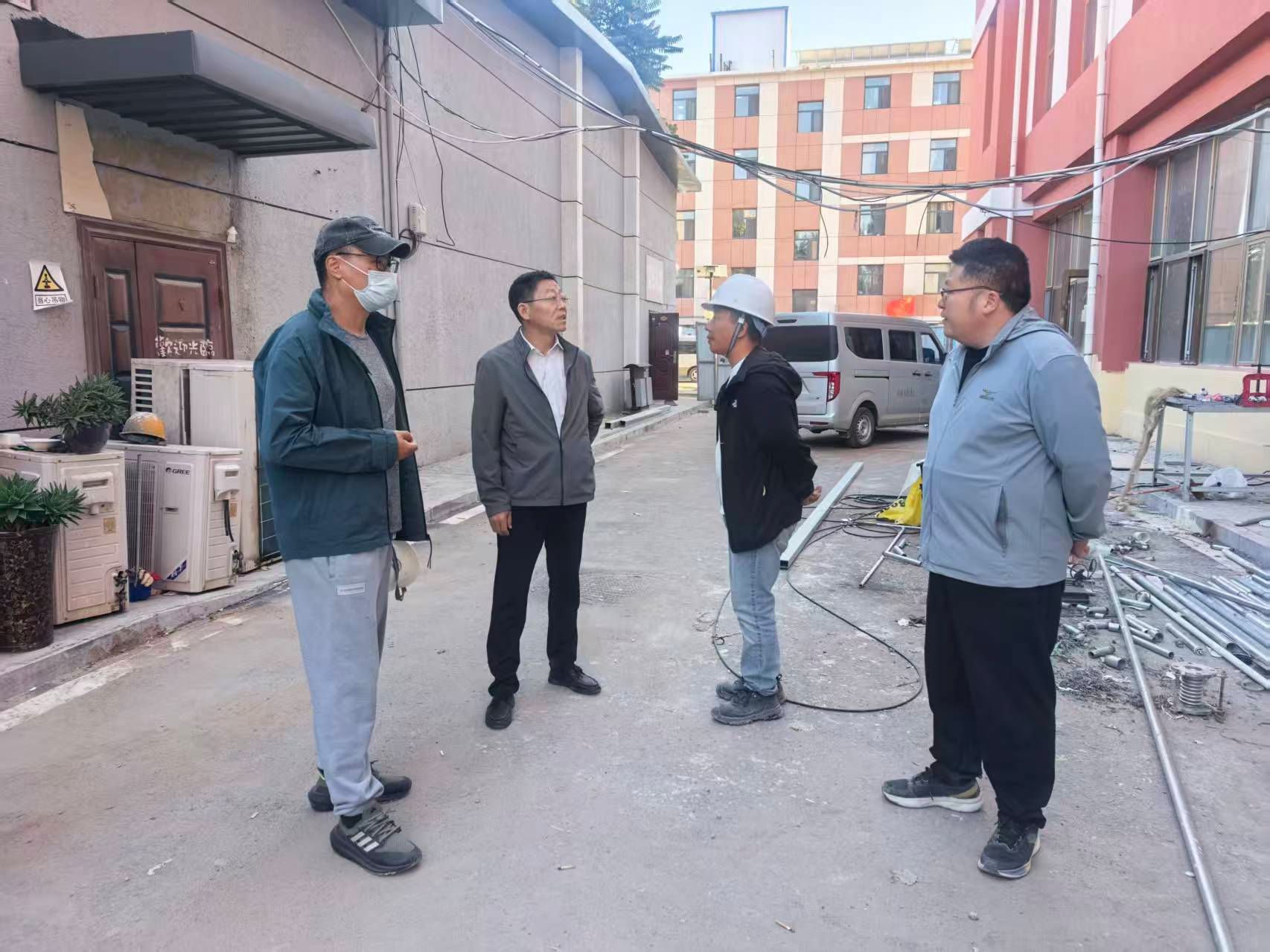 為進一步細化工作措施,強化監(jiān)督管理,確保各項目高標準、高質量完成,切實提升校園服務保障水平,9月17日,校黨委委員、副校長高喜天深入北食堂、創(chuàng)業(yè)樓等重點工程項目施工現(xiàn)場,實地檢查工程進展、安全管理及質量管控情況。后勤管理處負責人陪同檢查。