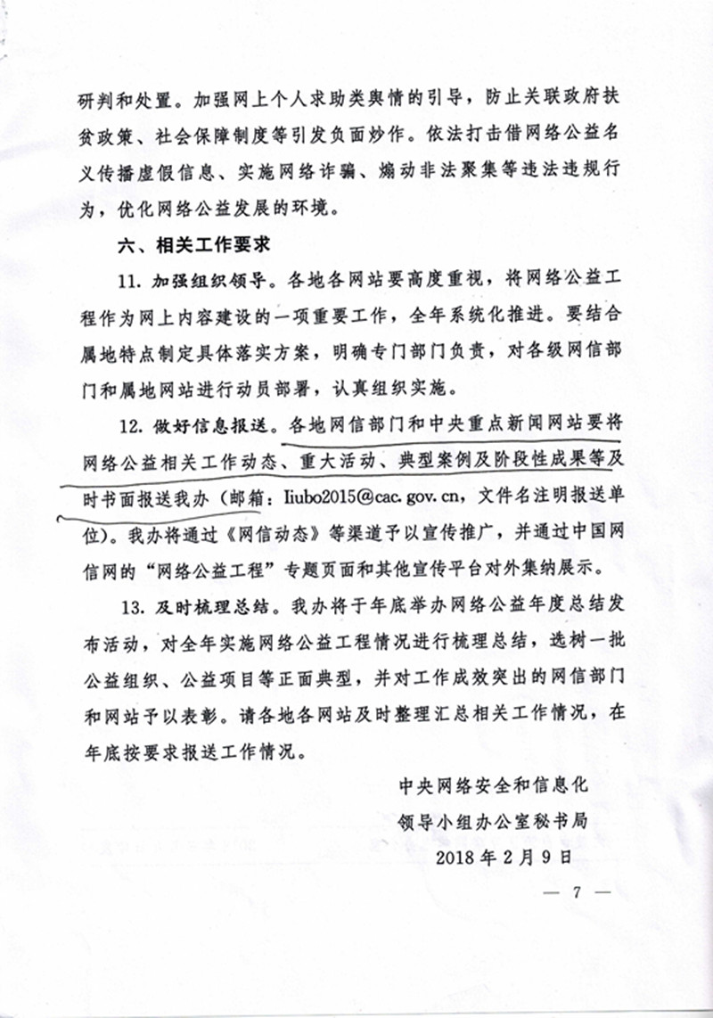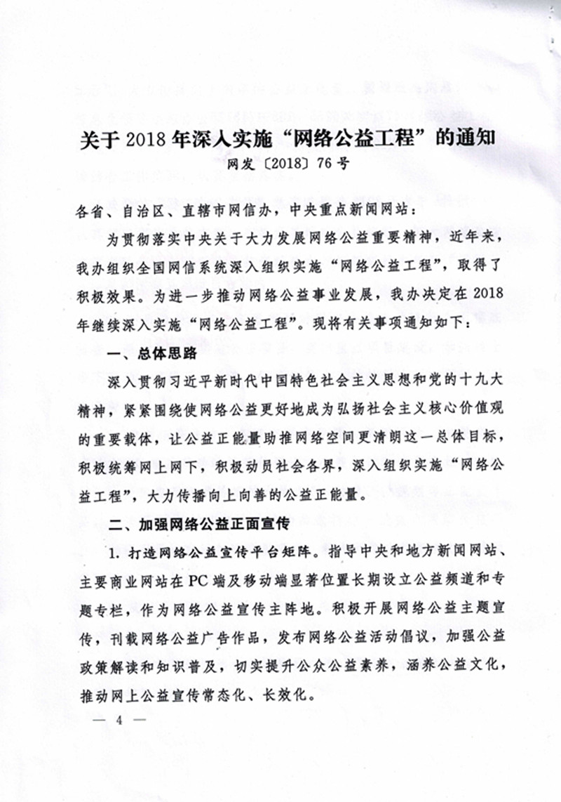 各黨總支: 現(xiàn)將《2018年深入實施“網(wǎng)絡公益工程”的通知》轉(zhuǎn)發(fā)給你們,請結(jié)合工作實際,加強組織領導,開展形式多樣的網(wǎng)絡公益活動。年終時,各黨總支要將網(wǎng)絡公益相關工作動態(tài)、典型案例及階段性成果上報至宣傳部(郵箱mzxyxcb@126.com)。