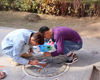 為豐富大學(xué)生課余文化生活,以生動活潑的藝術(shù)氣息營造校園氛圍,展示當(dāng)代大學(xué)生的個性風(fēng)采,以朝氣蓬勃的精神風(fēng)貌迎接黨的十九大勝利召開,10月15日—17日,由美術(shù)系手繪社主辦,開展了“井上添彩”—愛護(hù)環(huán)境、創(chuàng)和諧校園井蓋手繪活動。