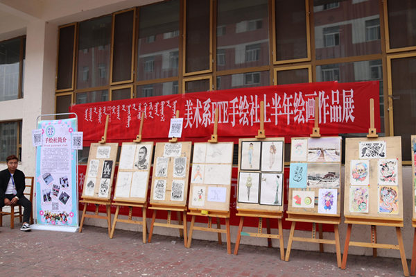 為豐富校園文化生活,推動學校文化建設,展示當代大學生社團活動風采,2017年9月15日中午,美術系手繪社在食堂前舉辦了“手繪社上半年繪畫作品展”。