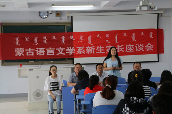 蘇布道副主任首先代表蒙古語(yǔ)言文學(xué)系全體師生員工對(duì)各位家長(zhǎng)及新同學(xué)的到來(lái)表示熱烈歡迎,并介紹了蒙古語(yǔ)言文學(xué)系師資隊(duì)伍、專(zhuān)業(yè)特點(diǎn)及教學(xué)團(tuán)隊(duì)基本情況。隨后,蘇主任提出,希望新生在大學(xué)期間逐漸培養(yǎng)獨(dú)立自主的能力,要有夢(mèng)想、敢拼搏、愛(ài)學(xué)習(xí)、善溝通,真正成為當(dāng)代優(yōu)秀大學(xué)生。白東升副書(shū)記強(qiáng)調(diào)指出,學(xué)校教育與家庭教育的雙向結(jié)合尤為重要,希望家長(zhǎng)多提寶貴意見(jiàn),與老師尤其是班主任輔導(dǎo)員老師保持聯(lián)系,密切關(guān)注孩子成長(zhǎng),在家長(zhǎng)和學(xué)校的共同努力下,攜手陪伴孩子成長(zhǎng)與成才。最后,家長(zhǎng)主動(dòng)與老師們進(jìn)行了溝通,詢(xún)問(wèn)專(zhuān)業(yè)概況、成長(zhǎng)、就業(yè)等問(wèn)題。