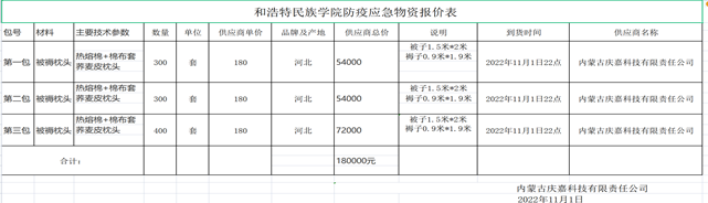 呼和浩特民族學(xué)院防疫應(yīng)急物資(1000套被褥)項(xiàng)目