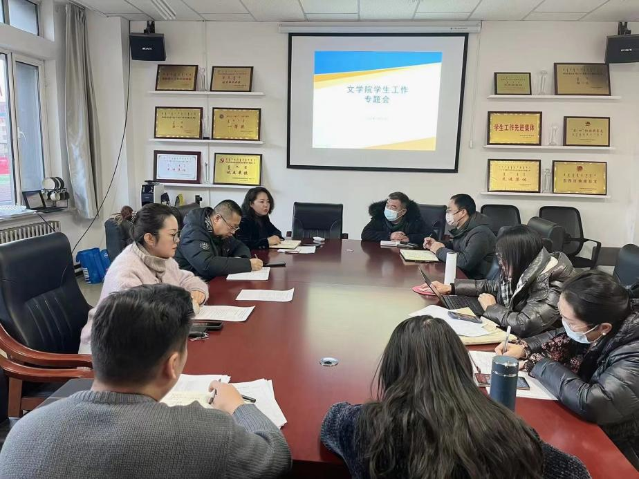 為進(jìn)一步加強學(xué)生思想教育與安全服務(wù)管理工作,強化學(xué)院學(xué)風(fēng)建設(shè),11月28日下午,文學(xué)院學(xué)生工作領(lǐng)導(dǎo)小組在尚智樓115會議室召開“文學(xué)院學(xué)生工作專題會”。學(xué)院班子成員及全體班主任、輔導(dǎo)員參會。會議由黨總支書記李宏亮主持。