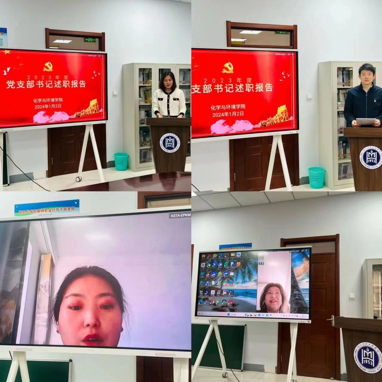 為深入學(xué)習(xí)貫徹黨的二十大精神和習(xí)近平新時(shí)代中國(guó)特色社會(huì)主義思想,不斷加強(qiáng)和改進(jìn)基層黨組織建設(shè),查找差距、檢視問(wèn)題、明確方向,進(jìn)一步提高學(xué)院黨建工作質(zhì)量和水平,1月2日,化學(xué)與環(huán)境學(xué)院黨總支在綜合樓1108會(huì)議室組織召開了2023年度支部書記抓基層黨建述職報(bào)告會(huì)。學(xué)院領(lǐng)導(dǎo)、黨總支委員、各黨支部書記及支部委員參加會(huì)議。學(xué)院黨總支副書記烏玉娜主持會(huì)議。