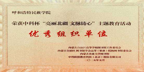 中科杯“亮麗北疆 文脈鑄心”主題活動(dòng)吸引了全區(qū)40余所高校、19000余名師生的廣泛參與。圖書(shū)館對(duì)本次活動(dòng)高度重視并進(jìn)行大力宣傳,最終在學(xué)生工作部、團(tuán)委和各二級(jí)學(xué)院的積極配合下,全校700余名師生參與活動(dòng)并取得了優(yōu)異成績(jī)。圖書(shū)館榮獲“優(yōu)秀組織獎(jiǎng)”;文學(xué)院王含鮮榮獲本科院校學(xué)生組二等獎(jiǎng);計(jì)算機(jī)與信息技術(shù)學(xué)院周鑫、馬克思主義學(xué)院卜令慧、音樂(lè)與舞蹈學(xué)院?jiǎn)痰s獲本科院校學(xué)生組優(yōu)秀獎(jiǎng);圖書(shū)館郝喜鳳、薛芳、石梅榮獲優(yōu)秀指導(dǎo)教師獎(jiǎng)。本次活動(dòng)實(shí)現(xiàn)了引導(dǎo)師生深入學(xué)習(xí)貫徹習(xí)近平新時(shí)代中國(guó)特色社會(huì)主義思想,全面落實(shí)黨的二十大及二十屆二中、三中全會(huì)精神,弘揚(yáng)中華優(yōu)秀傳統(tǒng)文化、培育踐行社會(huì)主義核心價(jià)值觀的目標(biāo),為實(shí)現(xiàn)中華民族偉大復(fù)興凝聚起呼民院的青春力量。
