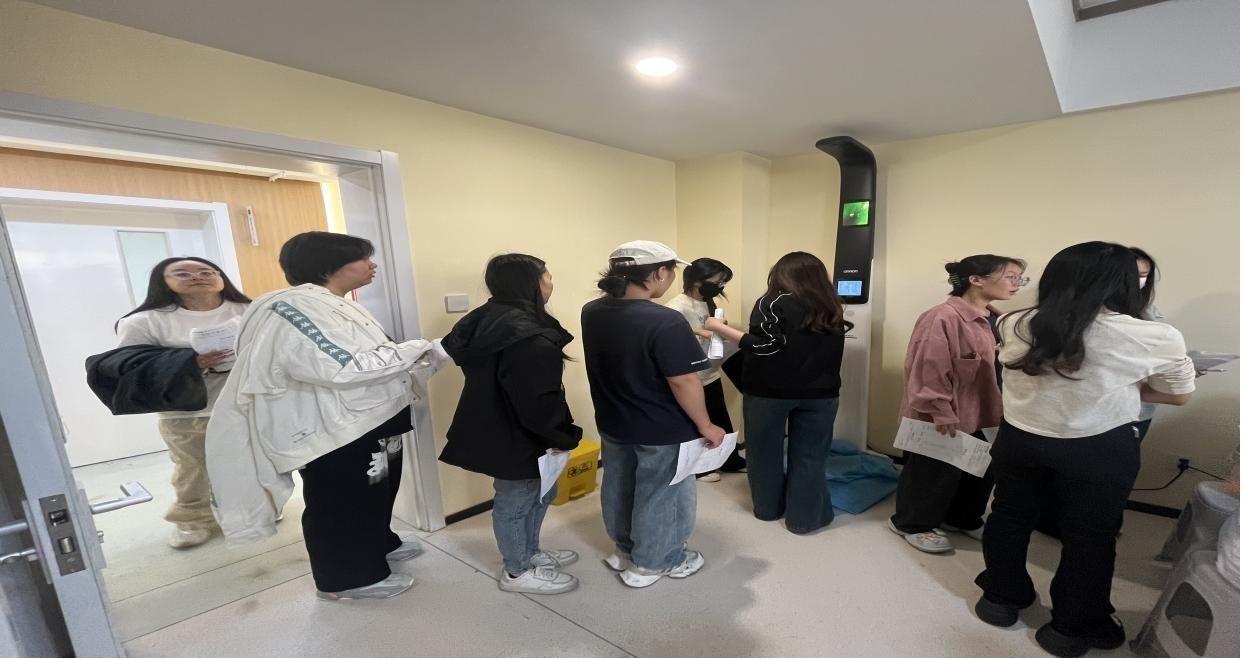 學(xué)校聯(lián)合體檢單位提前制定方案,通過分批次錯峰體檢、優(yōu)化流程指引、劃分功能區(qū)域等措施,確保每日的體檢工作高效有序開展。醫(yī)護(hù)團(tuán)隊嚴(yán)格執(zhí)行規(guī)范操作,為新生完成形體生理功能、內(nèi)外科、眼耳鼻喉、口腔等基礎(chǔ)檢查,同步開展血常規(guī)、肝功及結(jié)核菌素試驗等項目檢測,全面覆蓋生長發(fā)育、基礎(chǔ)體征與感染篩查需求?,F(xiàn)場設(shè)立應(yīng)急服務(wù)站應(yīng)對突發(fā)狀況,為特殊需求學(xué)生開通綠色通道,并安排志愿者協(xié)助信息核對與流程引導(dǎo),以專業(yè)服務(wù)與人文關(guān)懷保障體檢順暢進(jìn)行。