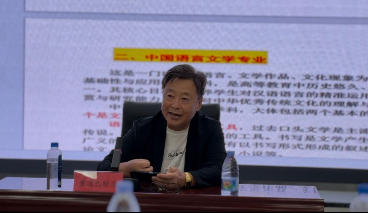 2025年9月4日下午,中國(guó)社會(huì)科學(xué)院民族學(xué)與人類(lèi)學(xué)研究所研究員、博士生導(dǎo)師曹道巴特爾教授應(yīng)邀來(lái)到我校文學(xué)院,以《中國(guó)語(yǔ)言文學(xué)與北疆文化建設(shè)》為題目進(jìn)行專(zhuān)題講座。本次講座由文學(xué)院院長(zhǎng)高娃教授主持,全院師生共同參與。