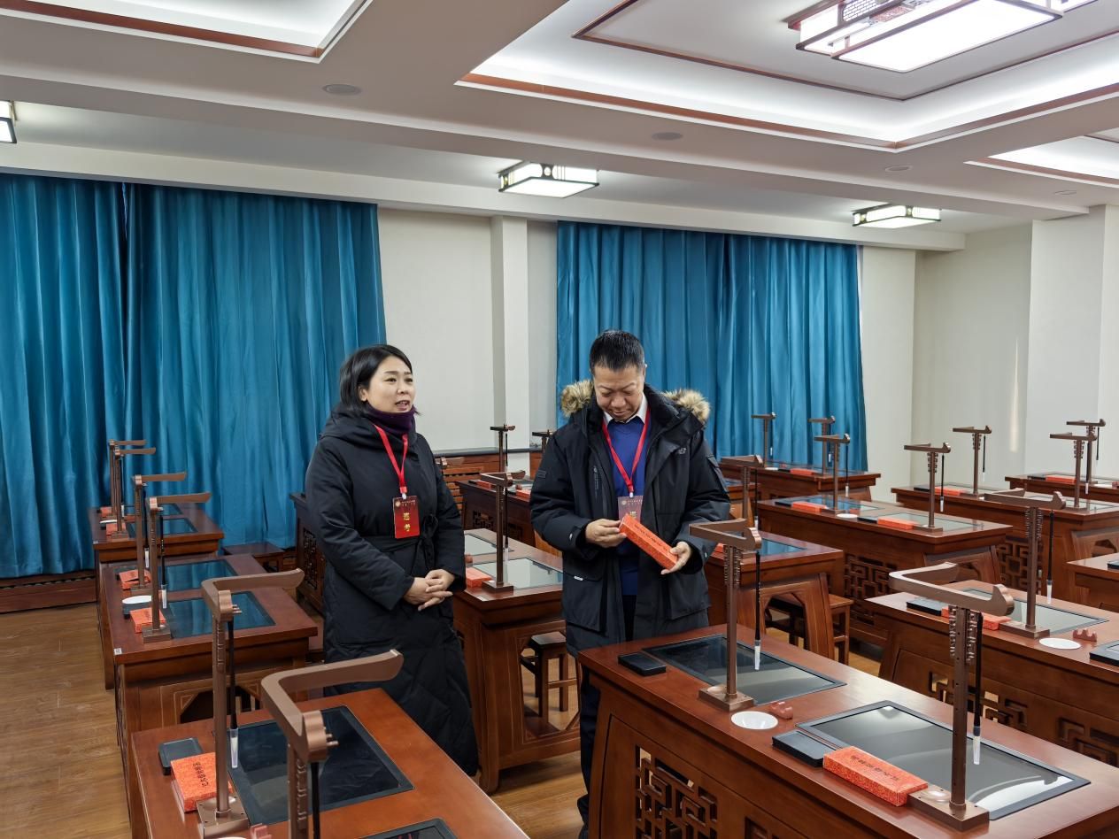 格根哈斯和雙虎先后實(shí)地察看了綜合實(shí)訓(xùn)室、智能書法教室、微格教室、VR實(shí)訓(xùn)室、教具室、微課制作室和商學(xué)院、美術(shù)學(xué)院、創(chuàng)新創(chuàng)業(yè)中心建立的實(shí)訓(xùn)室,認(rèn)真聽取了教務(wù)處、實(shí)驗(yàn)室管理中心和相關(guān)學(xué)院負(fù)責(zé)人和實(shí)驗(yàn)室負(fù)責(zé)老師對(duì)實(shí)驗(yàn)實(shí)訓(xùn)室建設(shè)規(guī)劃、改造調(diào)試情況和環(huán)境條件等方面的匯報(bào)。