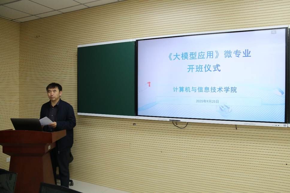 9月25日,計(jì)算機(jī)與信息技術(shù)學(xué)院大模型應(yīng)用微專(zhuān)業(yè)開(kāi)班儀式在綜合樓802舉行。學(xué)院院長(zhǎng)包烏格德勒、內(nèi)蒙古自治區(qū)社會(huì)科學(xué)院胡其吐研究員、微專(zhuān)業(yè)教學(xué)秘書(shū)趙雅娟老師及首批50余名微專(zhuān)業(yè)選修學(xué)生參加開(kāi)班儀式。