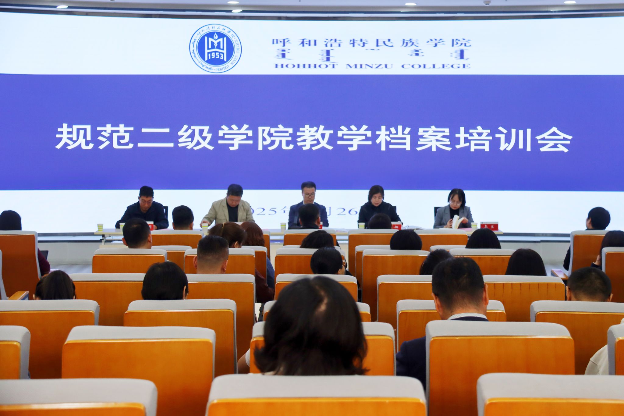 為扎實推進本科教育教學(xué)審核評估工作,結(jié)合二級學(xué)院互查、校領(lǐng)導(dǎo)抽查反映出的問題,進一步提升教學(xué)檔案規(guī)范化水平,9月26日上午,學(xué)校在北圖書館一樓報告廳召開規(guī)范二級學(xué)院教學(xué)檔案培訓(xùn)會。校黨委委員、副校長額爾敦布和主持會議并作總結(jié)講話。