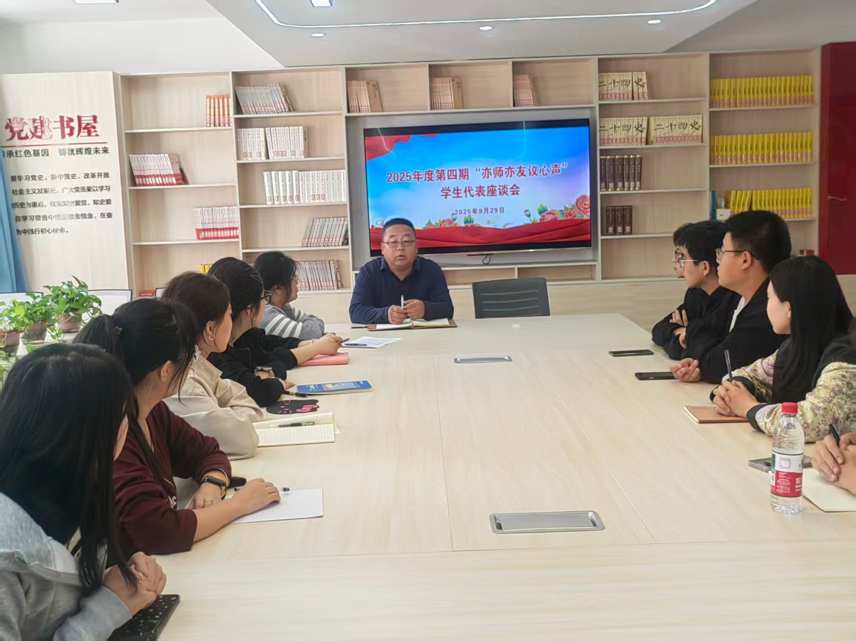 9月29日,學(xué)生工作部組織17個(gè)學(xué)院學(xué)生代表在“一站式”學(xué)生社區(qū)“一學(xué)院一品牌”主題文化公寓黨團(tuán)活動(dòng)室召開(kāi)2025年第四期“亦師亦友議心聲”學(xué)生代表座談會(huì)。